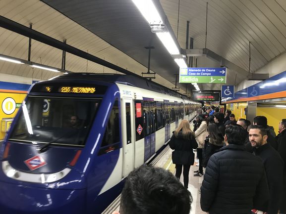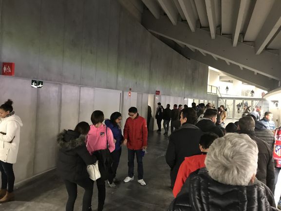 Caminé desde el hostal de la calle Hortalezas unos 200 metros hasta la estación de Metro Gran Vía y desde allí con la línea 5 llegué a Pueblo Nuevo para combinar con la 7 hasta la estación Estadio Metropolitano. Salí 14.45 y bajé en el estadio 30 minutos más tarde, una hora antes del inicio del juego.