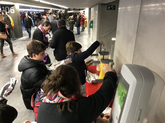 Para esta etapa, como en Uruguay, me fui a ver el ataque del Aleti, esta vez contra lo que sería la Amsterdam, a una distancia como si estuviera en la Tribuna América y más cerca de los fanáticos que en determinado momento (me sorprendí tanto que olvidé filmarlo), enarbolaron banderas españolas y cantaron la famosa "Que vivaaa Eeeespaña". No olvidemos que el Girona es catalán. Fue tan malo el segundo tiempo que al frío del clima se sumó el del juego y entonces, por dos euros, lo solucioné con un chocolate caliente.