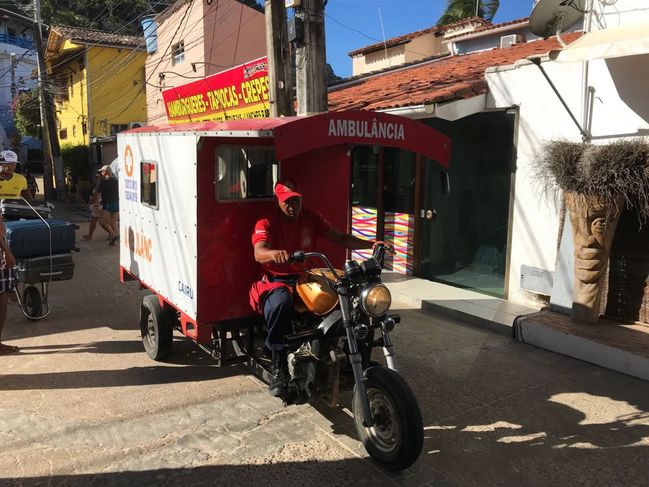 Y para entender como es el tema del transporte en la planta urbana de Morro de San Pablo, basta con apreciar la foto de la ambulancia del lugar