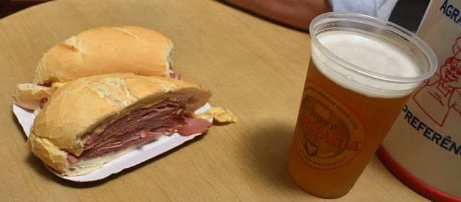 En el mercado Central de San Pablo, además de todo eso típico y atractivo que tienen estos lugares preparados para el turismo, hay una propuesta muy peculiar, el enorme sandwich de mortadela, con 400 gramos del mencionado fiambre, delicioso...