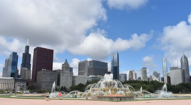 La Buckingham Fontain en el Grand Park, entre la avenida Michigan donde está el hotel Congress, donde nos alojamos, y el lago Michigan