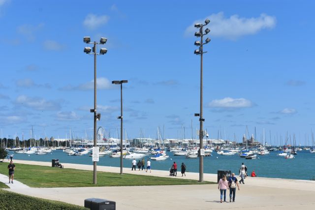 La costanera del Lago Michigan con las embarcaciones del Navy Pier