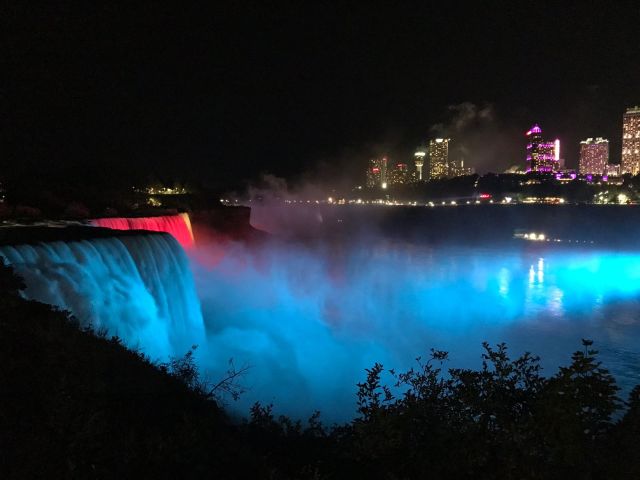 Cataratas del Niágara: de día un bello paisaje, de noche, espectacular
