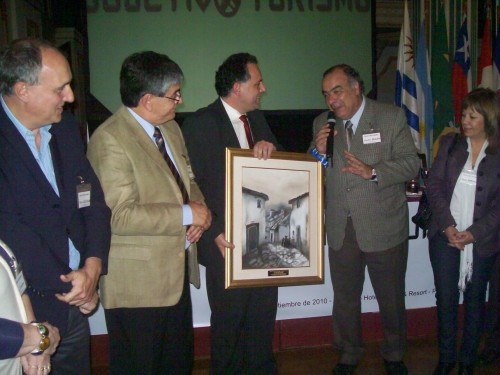 Miguel Ángel Acerenza le entregó su libro Marketing Hotelero, a la Directora del Argentino Hotel, Reneé Pereira de Méndez Requena y el CIPETUR y el PDA y el PDU, entregaron una plaqueta recordatoria y de agradecimiento por su presencia, a la OMT, Organización Mundial del Turismo, en manos de su Responsable de Medios.