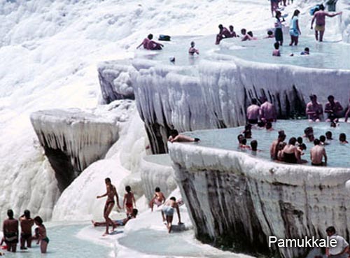 El baño: Es conocida como la Piscina Sagrada, esta divina inmersión en el suroeste de Turquía debe su nombre a que a medida que se flota en manantiales de aguas termales, relativamente refrescantes, a 34° C se puede mirar hacia arriba el cielo azul zafiro del mar Egeo y hacia