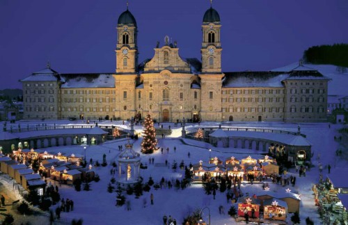 15 Cada año, el pueblo de Einsiedeln, en el cantón de Schwyz, se viste de fiesta durante la época de Navidad. Su mercado navideño, considerado el mayor de la región central de Suiza, se monta en la plaza frente al monasterio benedictino.