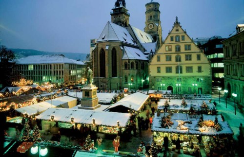2 Las preciosas casetas de madera del mercadillo navideño de Stuttgart, la extraordinaria ornamentación lumínica, el aroma a castañas asadas, a salchichas a la parrilla y al típico vino caliente, y los conciertos de Adviento, que tienen lugar cada día en el Palacio Antiguo y en la escalinata del Ayuntamiento, forman un romántico decorado navideño.