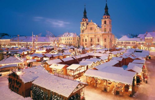 7 La histórica Plaza del Mercado de la ciudad alemana de Ludwigsburg, con sus dos iglesias barrocas, es el marco perfecto para su precioso mercado navideño, con más encanto aún todo nevado.