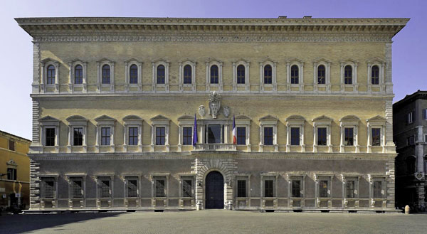 Sin embargo, Francia aparece en la historia del palacio en alquileres a los Borbones, hasta que en 1911 el país galo compra el inmueble y lo vende a Italia en 1936, aunque con una cláusula por la que se pone el Farnesio a disposición de Francia durante 99 años y, a cambio, Francia cede por el mismo período el hotel de La Rochefoucauld- Doudeauville, sede de la embajada de Italia en París.