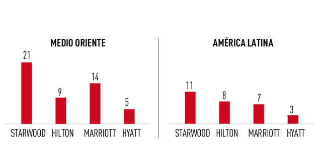En América Latina durante 2011 se abrirán seis nuevos hoteles, y hay tres aperturas anuales planeadas para los próximos tres años. Así, en 2015, Starwood contaría con 77 hoteles en la región.