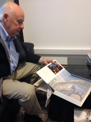 Con un libro de Carlos Páez Vilaró, autografiado y dedicado por el gran artista en una visita a Casapueblo