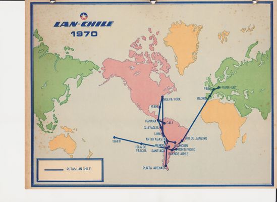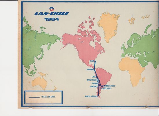 Lan había comenzado a operar la ruta a Montevideo con aviones Glenn Martin (Martin 2-0-2 ) en los cuales para cruzar la cordillera, los pasajeros debían usar mascarillas de oxígeno ya que no tenía cabina presurizada. Cuando empecé a trabajar ya volaba con DC6B y para cruzar la cordillera lo hacían a través de los pasos de montaña ya que su techo máximo eran 5 mil metros. En 1964 llegan los Caravelle y comienza la era Jet y con ello, la ruta a Estados Unidos: Montevideo-Buenos Aires- Santiago- Lima-Panamá-Miami.