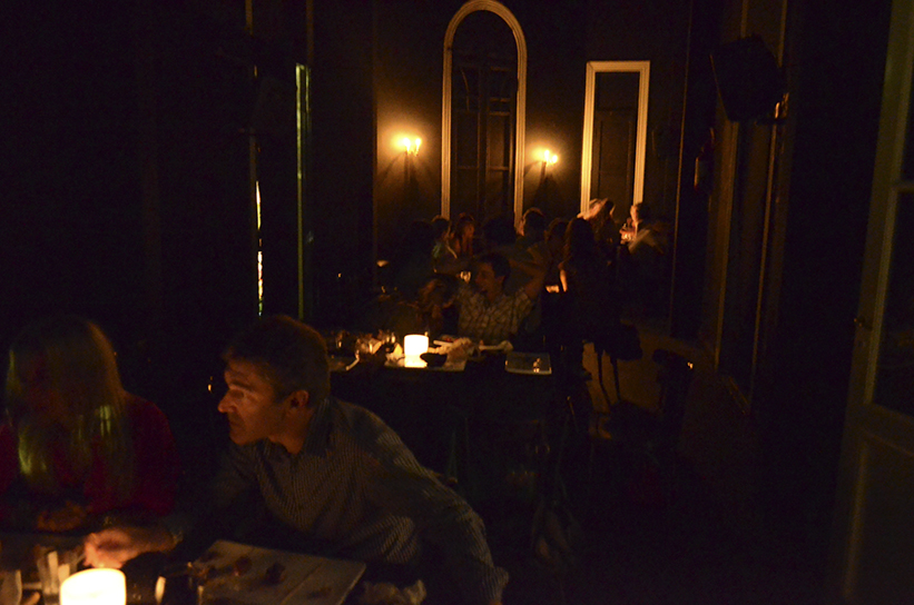 No necesitamos ir a Europa sin embargo, acá mismo cruzando el charco en Buenos Aires existe un restaurante que mezcla Teatro y Gastronomía. Atendido por personas no videntes promueve la concientización. Una experiencia sensorial pensada para derribar barreras. En el Teatro Ciego del Abasto, una de estas fusiones ya lleva cinco temporadas. Se trata de “A Ciegas Gourmet”, un espectáculo musical-gourmet en total oscuridad. Experiencia inédita que genera curiosidad y un público adepto. La capacidad es de 64 personas sentadas. Conducidos en todo momento por los responsables del espectáculo, que -tras una meticulosa explicación y recomendaciones varias- ubican personalmente a cada integrante del público en un recinto donde no se ve absolutamente nada. El tacto y el oído se agudizan, la comida y la bebida se adivinan a tientas. El aspecto de la comida presta un servicio esencial al gusto, pero en este restaurante la cosa va por otro lado. Durante el desarrollo del mismo, es inevitable no meditar sobre la ceguera, y los ciegos. Los artistas de la obra, no videntes todos, representan una historia de arrabal, pasión y bohemia, hilvanada con temas musicales donde la oscuridad parece enlentecer el paso del tiempo.