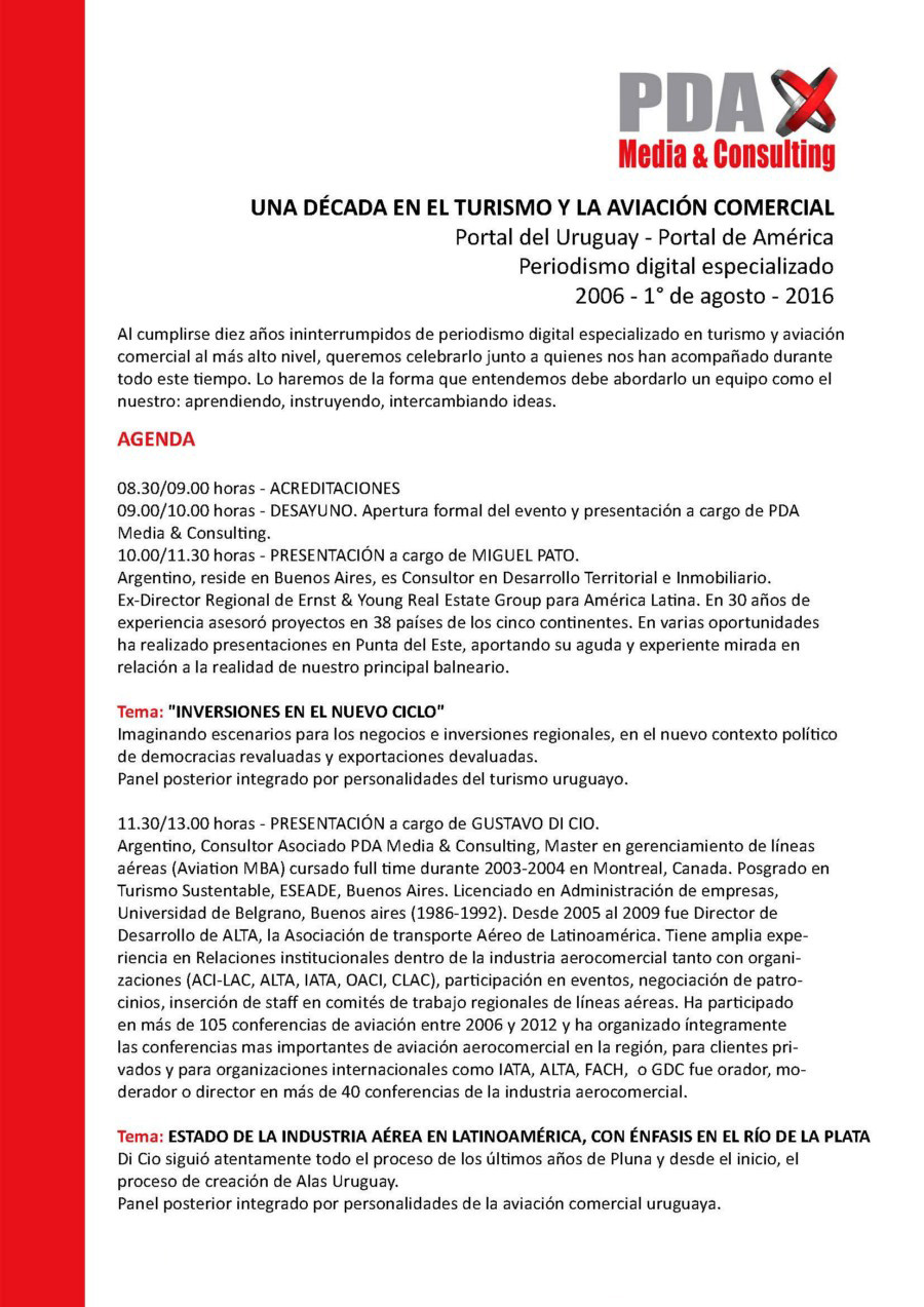 Ya está la agenda definitiva armada para el evento en que celebraremos los primeros diez años de nuestro equipo en el periodismo digital. Será con un formato que refleja nuestro estilo de siempre: aprendiendo, instruyendo, intercambiando ideas. En breve habilitaremos un espacio para que también algunos lectores del PDA puedan inscribirse y participar. Compartimos la agenda.