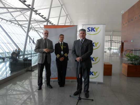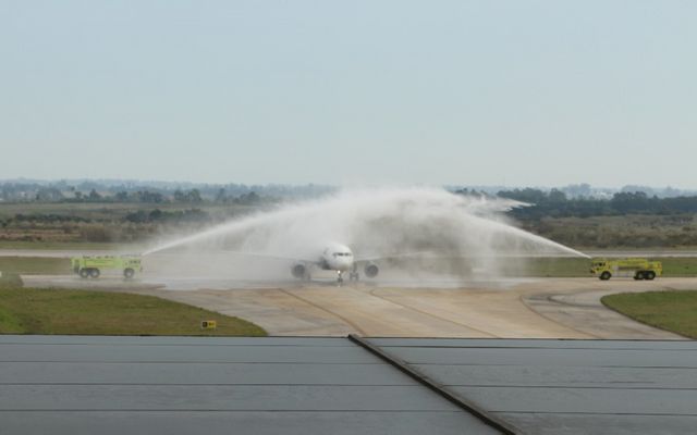 A las 10.10 AM del lunes 12 de setiembre tocó tierra por primera vez en el Aeropuerto de Carrasco un avión de Sky Airline