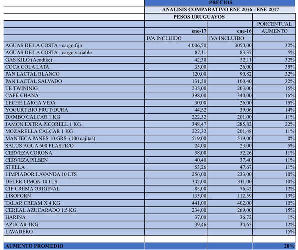 Como se demuestra en la imagen que consta de datos acerca de la variación de los precios de distintos artículos, se produjo un aumento promedio del 20%, lo cual conforma una paramétrica que demuestra que en el mes de enero 2017, teniendo ese aumento de la ocupacion de 10,5%, con los distintos aumentos de insumos y con la misma tarifa hotelera del año pasado la rentabilidad de los establecimientos va a estar en un 18% menos que en el año 2016, por lo tanto, como venimos sosteniendo desde hace años, ¿para qué tanta alharaca con el número de turistas y con los supuestos ingresos de divisas si lo que realmente interesa en los negocios es la rentabilidad y como queda demostrado es claramente negativa?.