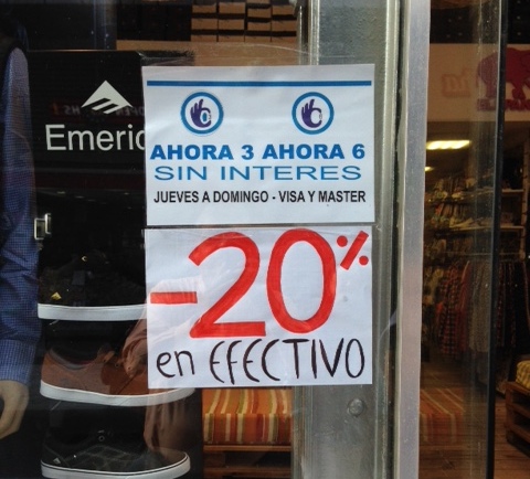 ¡Ah!, mientras que aquí "no nos dejan" diferenciar los precios de contado con el plástico, en Buenos Aires como en los viejos tiempos, hay descuentos de hasta el 20% por el pago en billetes...