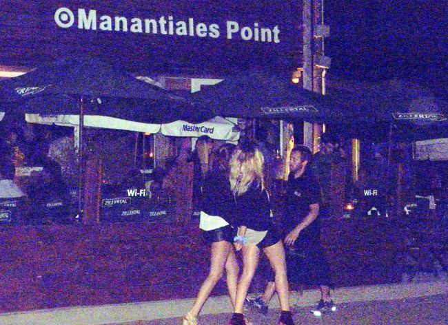 Sabíamos que el show empezaba aproximadamente a las 2 de la madrugada, y precisamente ese show, es típico de lo que pasa en Uruguay. "El trío de la casa", como se autodenominan, se presenta dos veces al día (19 hs el after beach y a las 2 AM) y ¿saben quienes lo componen?, anoten: en bajo, guitarra y voz, Chole Gianotti, cuerpo y alma de Abuela Coca, del Congo (y siguen firmas); también en bajo, guitarra y voz, Gonzalo Brown, también Abuela Coca, con un disco editado y en batería y otras percusiones, Federico "Chancho Blois, quien además de acompañar puntualmente a Abuela Coca, Congo y entre otras a la mismísima No Te Va Gustar o NTVG, es uno de los iniciadores de Don Nadie, la banda que inicia en breve su camino en las "Ligas mayores". Este trío que acostumbra pasar sus veranos por estos lares desde hace unos años, divierte a sus fans que llegan hasta allí para disfrutarlos y conmueven a los turistas, quienes no dan crédito de escuchar lo que escuchan en un boliche al que entraron tal vez, a tomar o comer algo. Entre semana a eso de las cuatro AM llegáron tres parejas a "tomar algo", una de ellas, era la compuesta por Tinelli y Sol Calabró, quienes "dejaron una suculenta propina" según uno de los mozos.