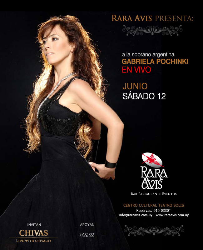 Mañana sábado 12, se presenta nuevamente la soprano argentina en Rara Avis, en el Centro Cultural Teatro Solís de Montevideo. Será una magnífica oportunidad para volver a disfrutar las bondades artísticas de la excepcional cantante pero también, agasajarse con el alto nivel gastronómico del prestigioso reducto capitalino.