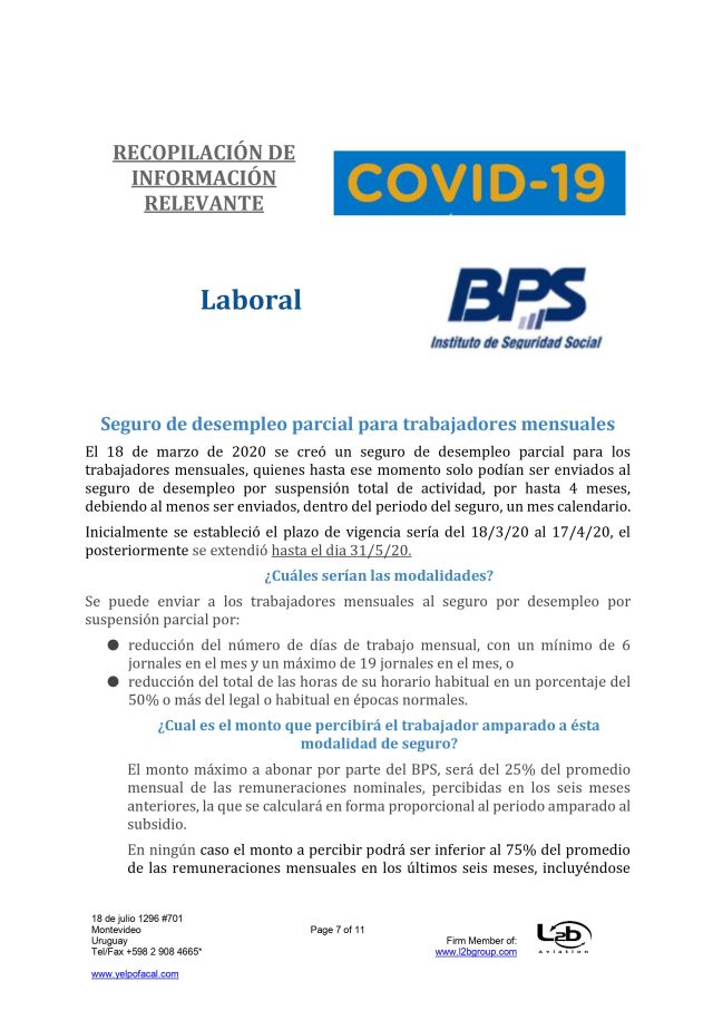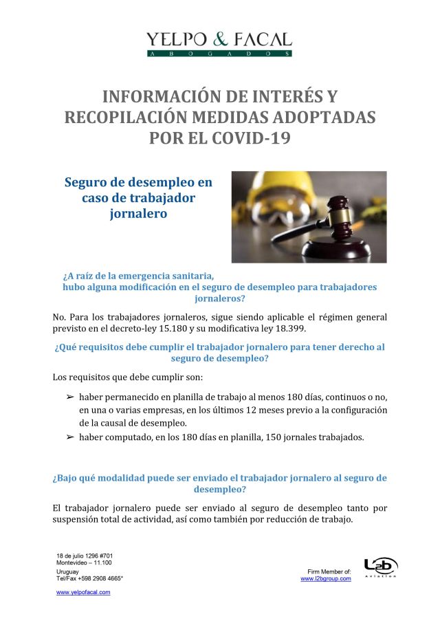 Esta es una nueva actualización (vea la anterior aqui) sobre medidas tomadas por el Covid-19. En esta ocasión se trata el seguro de desempleo en el caso del trabajador jornalero, novedades en materia tributaria, y otras normas laborales y de relaciones de consumo.
