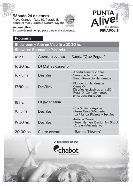 La tercera edición de Punta Alive! se llevará a cabo en Natural Mystic (Ruta 10, Parada 8, Piriápolis) a partir de las 16 horas.