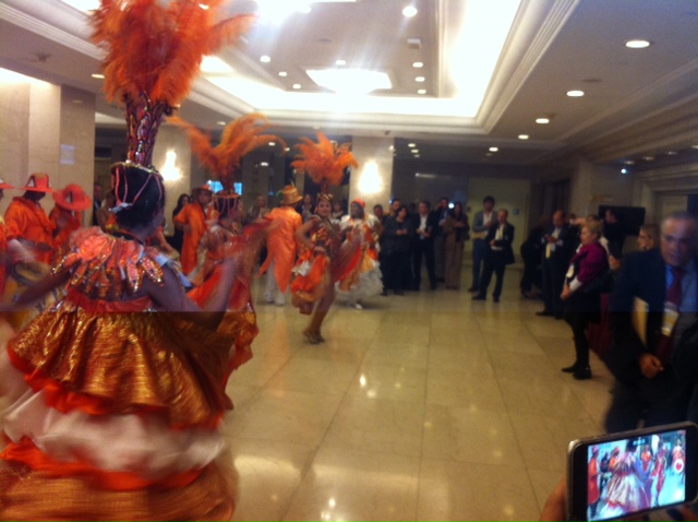 Finalizada la reunión, los asistentes, especialmente los extranjeros, fueron sorprendidos con un show de candombe interpretado por una cuerda de tambores y un grupo de bailarines.