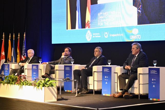 En su discurso, el ministro de Turismo, Tabaré Viera, expresó que “es un honor para el Uruguay realizar esta reunión y en la que vamos a intercambiar puntos de vista y la atención a los desafíos que tiene el turismo en el mundo entero luego de la pandemia y de la crisis que se produjo en el mundo”.