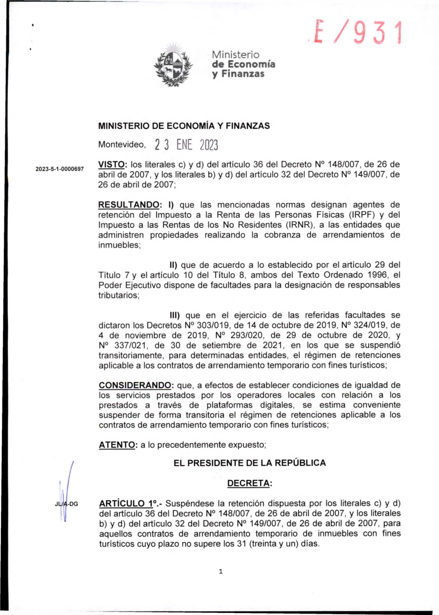 El gobierno decretó que las inmobiliarias dejen de ser agentes de retención para los contratos de arrendamiento temporario de inmuebles con fines turísticos cuyo plazo no supere los 31 días entre el 1 de enero y el 9 de abril de 2023. El decreto tiene fecha del pasado 23 de enero. Si bien "más vale tarde que nunca", queda muy claro que el período de validez se inicia el 1 de enero, más de tres semanas anteriores a la firma y al anuncio formal. Consultamos a varios integrantes del sector inmobiliario de Maldonado y podríamos resumir el sentir general en la respuesta de un caracterizado agente inmobiliario puntaesteño que no quiso ser mencionado: "Es un decreto que debió salir en los meses previos a la temporada, ya hay un perjuicio generado justamente al sector formal en materia de Arrendamientos Turístico , imagínate que a los propietarios tuvimos que decirles que por decreto gubernamental teníamos que retenerles el 10.5% del valor de su alquiler. La consecuencia fue que resolvieron alquilar por los otros canales nada formales (plataformas). La actividad turística tuvo el mayor perjuicio por los dos años de pandemia, y por ende las empresas relacionadas a servicios turísticos con pérdidas importantes en ese proceso, y cuando también en el sector Inmobiliario esperábamos una respuesta acorde a esta situación no la tuvimos. Hoy llega el decreto cuando ya está jugada la temporada y el daño hecho. ¿Cómo debemos calificar está situación y por ende, la gestión del Ministerio de Turismo?".