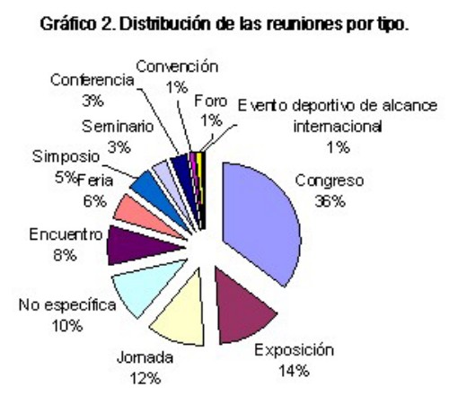 Del total de estas reuniones, el 35% son congresos; el 14%, exposiciones y el 12%, jornadas.