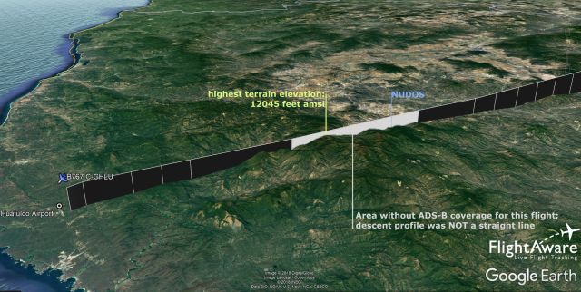 El vuelo ROU1892 procedente del Internacional de Calgary (YYC), recibió instrucciones del controlador aéreo a descender “a discreción” a 6,000 pies, cuando se encontraba aproximadamente sobre el fijo ‘NUDOS’ (33 millas náuticas del VOR de HUX), establecido en la aerovía UJ36 y nivelado a 16,000 pies de altitud.