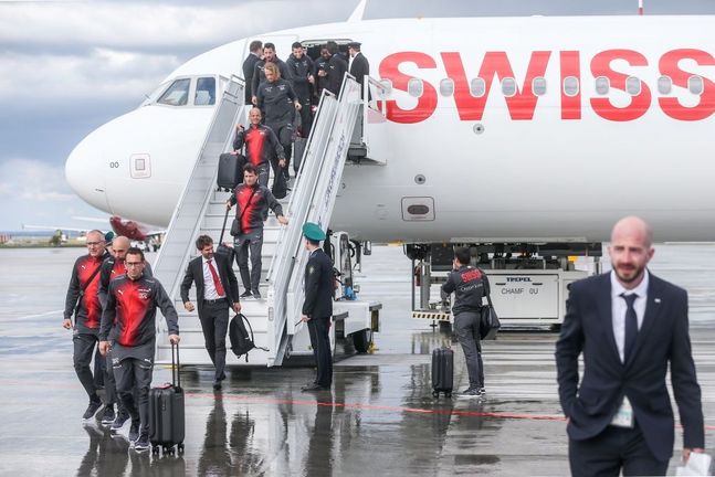 Swiss Air Lines es miembro del Grupo Lufthansa, y al igual que Lufthansa, vuela el Airbus A321 y utilizó uno para llevar al equipo a Samara, donde juega su primera ronda de juegos. En el interior, los suizos A321 son mucho más espaciosos que los de Lufthansa, al menos por adelantado, y es seguro decir que los jugadores llegaron un poco menos apretados que los alemanes.