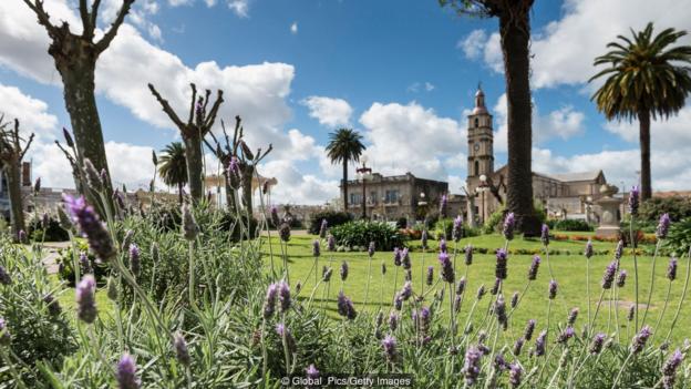 Cuando llegué al centro de la ciudad, era temprano en la noche y la vida estaba regresando mientras los locales se levantaban de sus siestas de la tarde. Un grupo de niños jugó al escondite en la plaza principal, Plaza Constitución, agachándose en el quiosco de música de hierro fundido, donado por la compañía a la ciudad en 1902 y una réplica de uno que alguna vez estuvo en el Crystal Palace de Londres. . Los padres se reunieron en bancos para tomar sorbos, el té de hierbas locales rico en cafeína, mientras que los periquitos de los monjes cantaban desde sus perchas en los numerosos árboles de palmera, sauce y palo borracho.