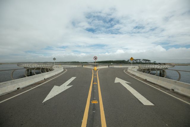 Puente Laguna Garzón es un puente anular diseñado por el arquitecto uruguayo Rafael Viñoly. Hace un círculo perfecto a través del agua de Laguna Garzón. Crédito: Tali Kimelman para The New York Times.