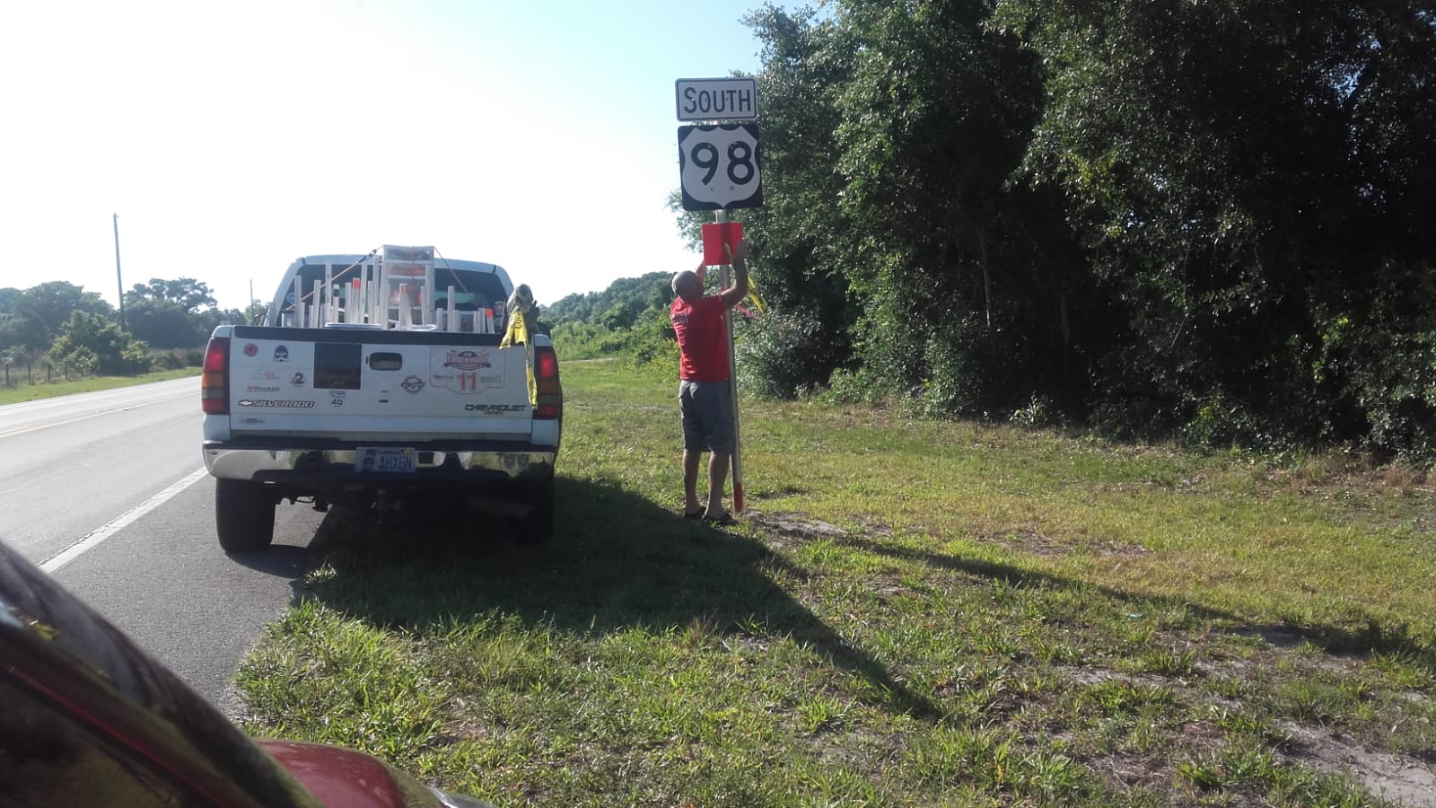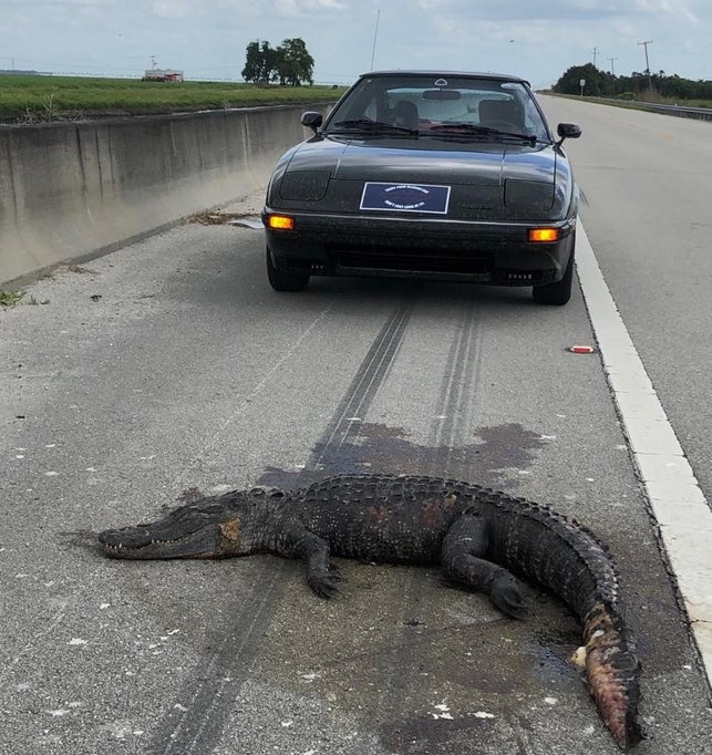 Daniel Romagnoli insiste que esta prueba, tal como la organizan, une el placer del automovilismo con el turismo de aventura, pues pueden encontrarse situaciones insospechadas como este lagarto muerto por un camión en la ruta.