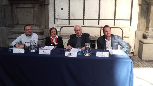 Alcalde del Municipio B Carlos Varela; Ministra (MVOTMA) Eneida de León; Ministro (MTOP) Victor Rossi; Intendente (IDM) Christian Di Candia.