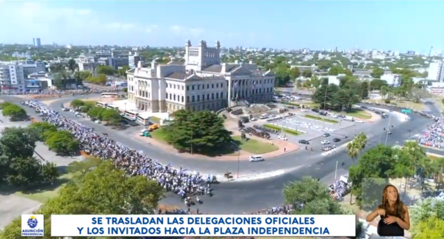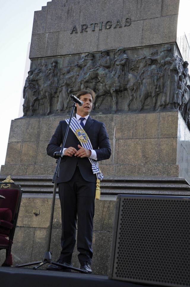 Finalizada la ceremonia, Lacalle y Argimón saludan a autoridades nacionales y extranjeras presentes. Las delegaciones comienzan su traslado hacia la Plaza Independencia. Finalmente son más de 3.300 los jinetes llegados de todos los rincones del Uruguay.