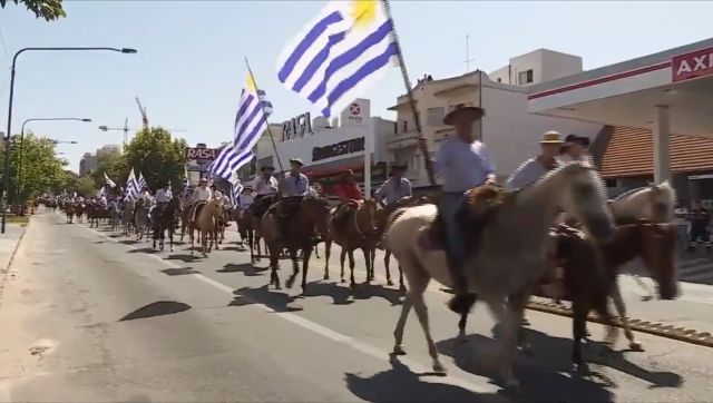 Una nota que se vio en todos las rutas de acceso de Montevideo fue la presencia de una numerosa caballada. Los jinetes desde ayer fueron reuniéndose en el predio de la Rural del Prado, pero temprano en la mañana comenzó por decenas el flujo de jinetes que habían pernoctado en la zona rural del departamento. La impaciencia ganó, y los jinetes, en un número estimado mayor a los 1.500, salió una hora antes de lo previsto hacia el Palacio Legislativo. El canal 4 subtitulaba al mostrar la caballada que el número podía llegar a los 4.000.