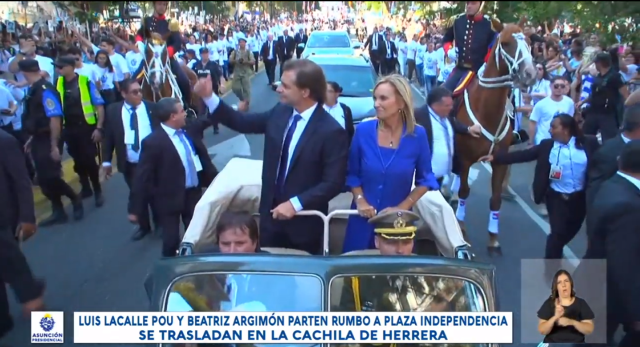 Lacalle y Argimón están llegando a la Plaza Independencia donde los espera el Presidente Saliente, Tabaré Vazquez, para realizar el cambio de mando.