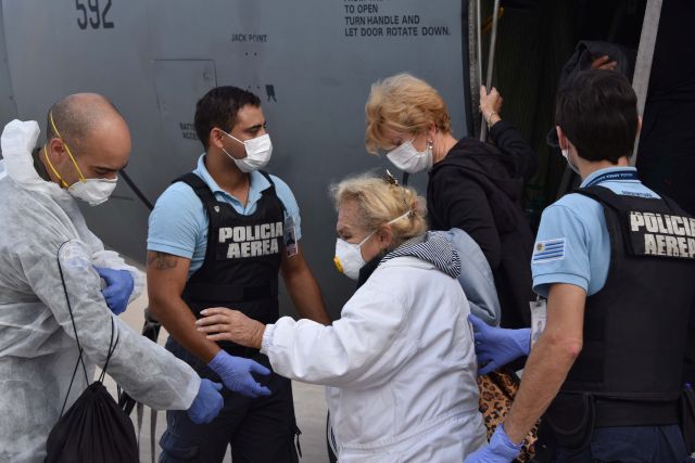 Sobre las 14:15 horas arribó al Aeropuerto Internacional de Carrasco "Cesáreo L. Berisso" la aeronave C-120 Brasilia con 20 pasajeros y sobre las 14:30 horas la aeronave C-130 "Hércules" con 69 pasajeros.