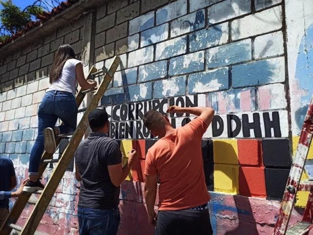Integrantes de la coalición anticorrupción pintan un mural en el Estado Táchira, en el occidente de Venezuela. Foto: Beatriz Salas/Transparencia Venezuela