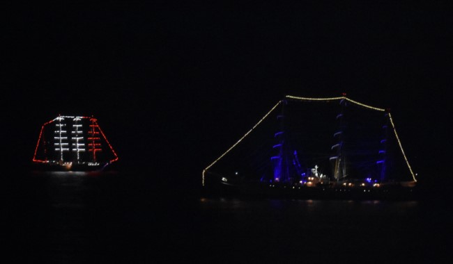 El martes a la noche, todos los veleros brindaron un gran espectáculo de luces fondeados en la bahía de Maldonado.