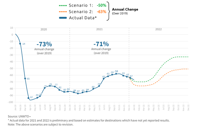 LLEGADAS DE TURISTAS INTERNACIONALES: 2020, 2021 Y ESCENARIOS PARA 2022
