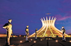 Brasilia ya no es hoy tan moderna como a comienzos de los ’70. Pero en aquellos años, si uno se aparecía de repente entre sus calles podía llegar a imaginar que estaba caminando por otro planeta habitado por una raza más avanzada tecnológicamente. Y por más que la modernidad de Brasilia sea casi del pasado, los viajeros aún tienen esa sensación de viaje interplanetario al recorrerla. Sin embargo, es un tiempo congelado en un viejo futurismo, aunque suene raro. Y por eso es tan raro: porque ninguna otra ciudad del mundo es así de “moderna” en su totalidad, ni tan “modernamente” antigua. Hay edificios de ese estilo en otras ciudades, incluso barrios hiper modernos como La Defense en París donde uno se asoma a sus límites o a las terrazas de los rascacielos y ve que a las pocas cuadras ya hay un pasado, edificios más viejos, una historia. En Brasilia no. La ciudad parece haber brotado de repente en medio del desierto en pocos días –como una parábola de la Creación–, diferente de todas las demás que hubo antes y después en todo el mundo. Y una vez terminada se le agregaron los habitantes. Pero el tiempo se detuvo de inmediato y Brasilia así quedó, como una ciudad de otro planeta –pura ciencia ficción– monumentalmente fría, deslumbrante por las noches.