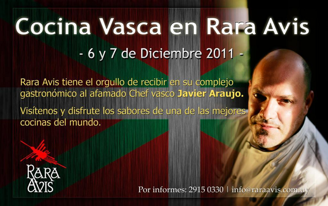 Martes 6 y miércoles 7, con la presencia del afamado chef vasco Javier Araújo, el Complejo Gastronómico Rara Avis, propone deleitarse con varias especialidades a cargo de este maestro de la cocina.